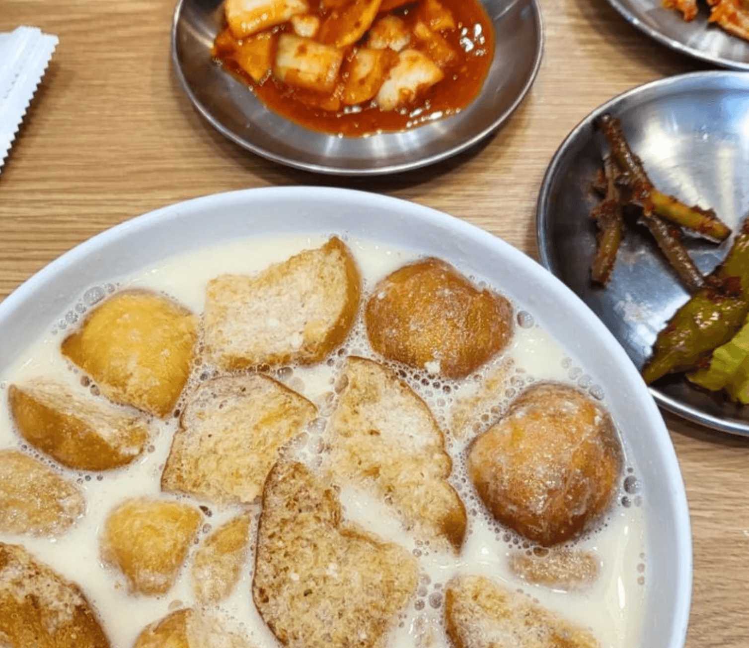 여기에, 콩가루를 넣어 손 반죽으로 만든 꽈배기, 찹쌀 도넛을 걸쭉한 콩물에 듬뿍 넣어 내놓으면? 담백하고 고소하면서 속이 든든한 점심식사가 한 끼가 된다. 그뿐만 아니라 콩국과 어울리는 음식이 무엇일까 고민하다가 이제는 토스트와 비빔국수까지 함께 내놓기 시작했다고! 매일 연구에 연구를 거듭한다는 김민수 사장에게는 든든한 후원자도 있다.