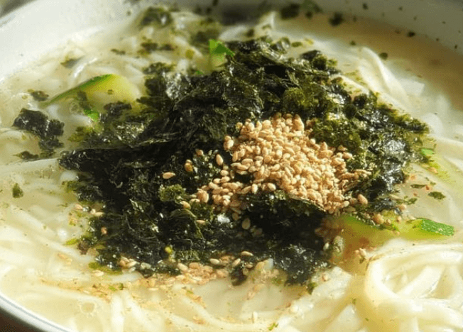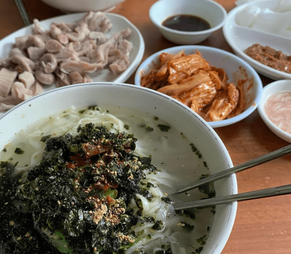 올라간 김가루도 장작불씨에 직접 굽는다고 하니 그 향이 너무 좋을 것 같네요. 하나하나 정성이 들어간 듯한 국수의 맛은 전혀 자극적이지 않고 구수하고 담백한게 질리지 않고 계속해서 당기는 맛이라고 하네요.