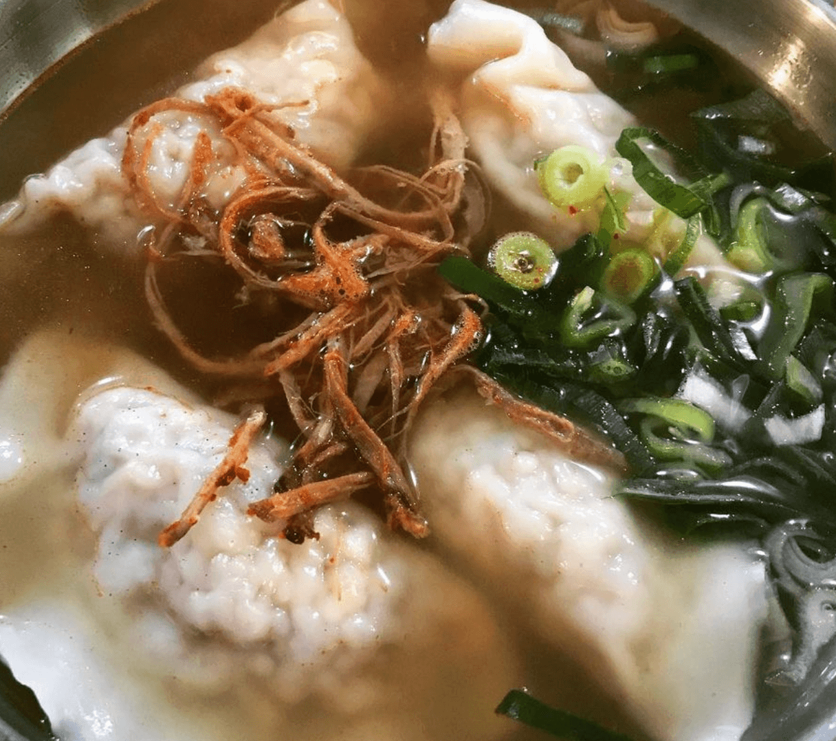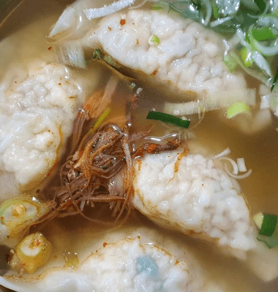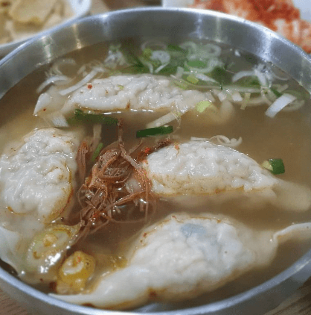 속이 꽉찬 만두는 크기가 큼직큼직하고 만두피도 두껍지 않아 만두소의 맛과 함께 국물에 우러나는 맛도 깊다고 합니다! 큼직한 만두는 세개만 먹어도 배가 부를 정도라고 하네요!
