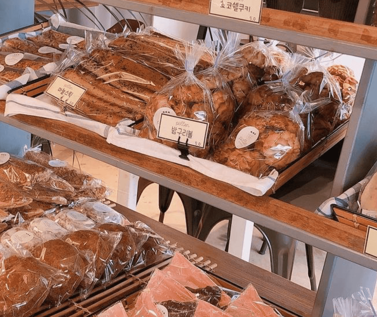 때문에 가격도 너무 착해서 하나둘 담다보면 어느새 한가득 사오게 된다고 하네요. 아기자기한 가게 분위기와 걸맞게 너무 귀여운 빵들이 많더라구요. 종류도 많아서 선택하기 쉽지 않겠어요~