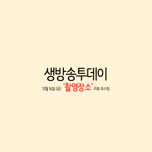 12월 16일 금요일 생방송투데이 촬영지는 아래쪽 링크를 참고하세요