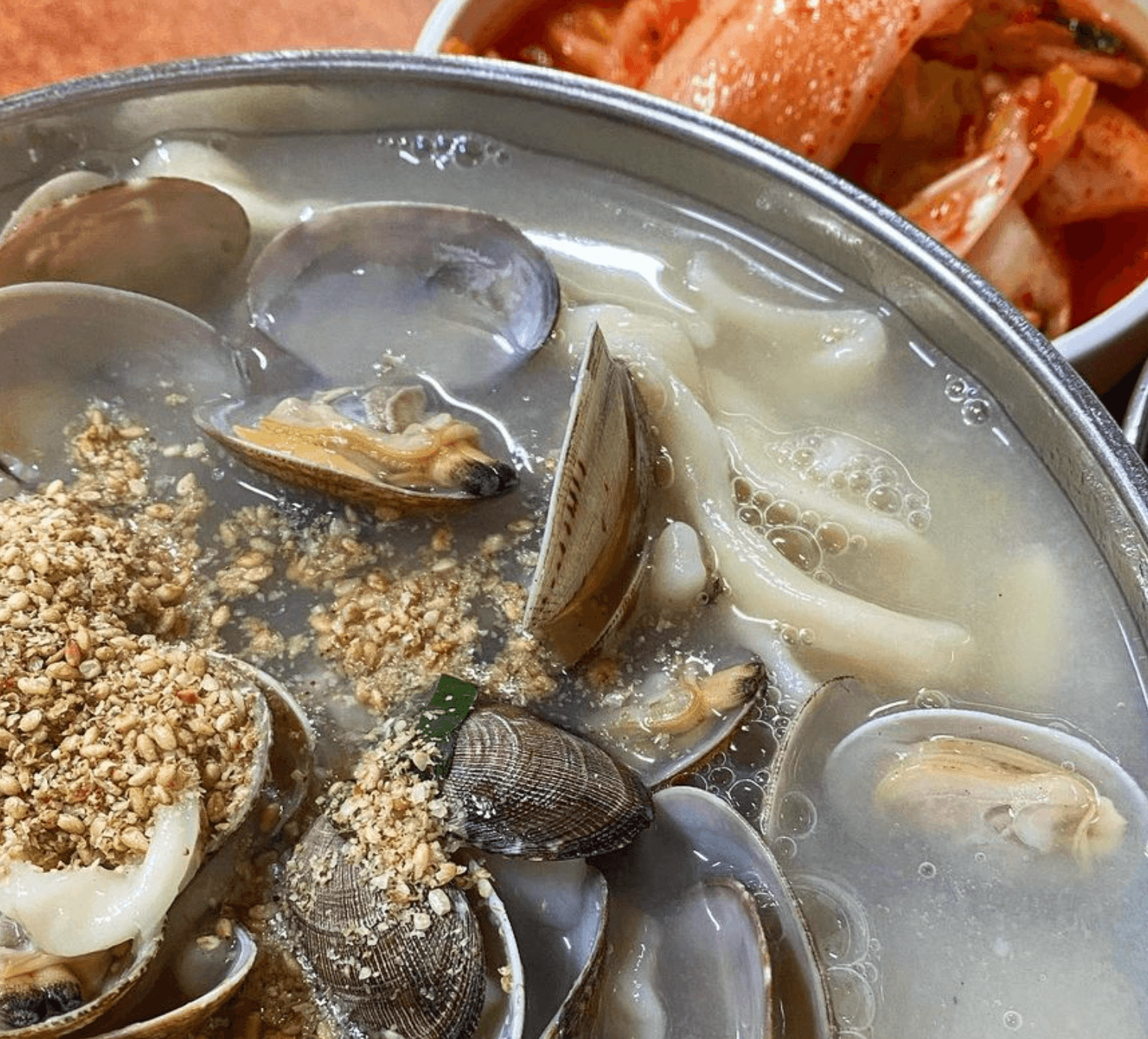 이곳 서부시장에서 만나본 장소는 총 4곳으로 바지락칼국수, 도깨비방망이 빵, 감태, 새조개 샤부샤부집 으로 정말 다양한 시장상인들을 만나보았습니다. 가장 먼저 소개해드릴 장소는 바지락칼국수집과 도깨비방망이 빵 을 판매하는 식당입니다.
