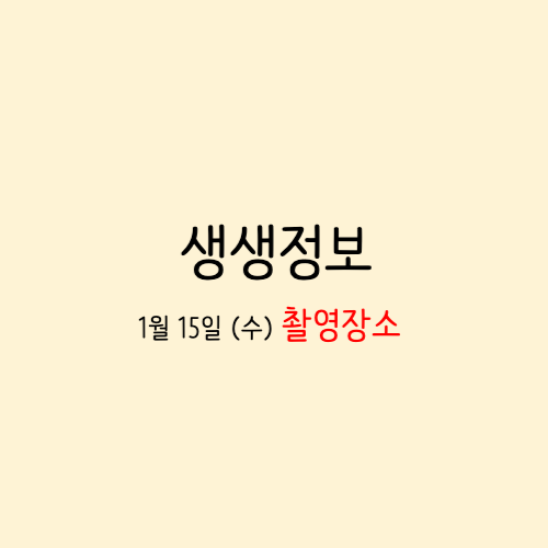 KBS 2TV 생생정보 방송은 한국인이 가장 많이 보는 저녁정보 프로그램으로 잘 알려져있으며 대한민국 구석구석의 살아 움직이는 생생한 현장은 물론 맛있는 음식 정보와 웃음과 감동을 선사하는 휴먼스토리, 유익하고 재미있는 알찬 정보까지! 우리 주변의 궁금한 이야기를 진솔하고 생생하게 담아 시청자들에게 유쾌한 저녁을 선사한다.대표적으로 미스터Lee의 사진한컷 대한민국, 택시맛객, 이PD가간다 등 다양한 요일별 코너를 통해 수많은 애청자들을 낳은 장수프로그램입니다. 매일 전국에 위치한 맛집과 제철음식 가족, 친구, 연인과 떠나기 좋은 관광지를 소개하며 큰 사랑을 받고 있습니다. 금일 방송을 통해 소개된 촬영장소는 아래쪽 링크(바로가기)를 통해 확인할 수 있습니다.