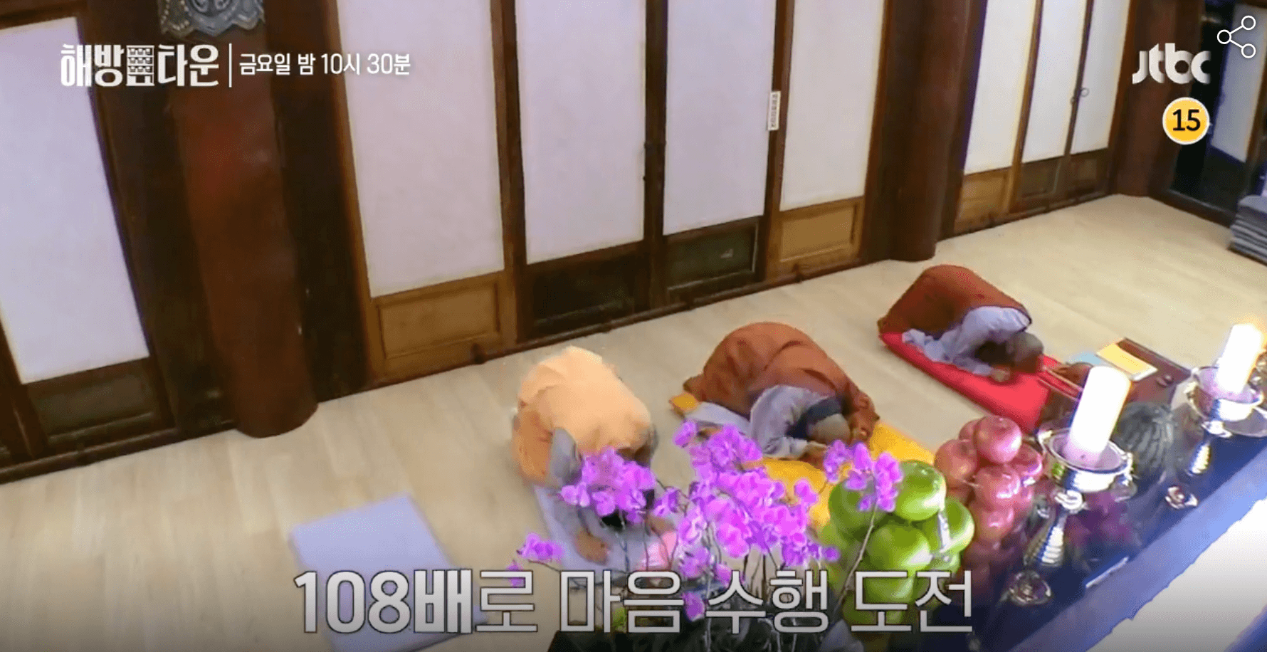 오늘 방송에서 이종혁 씨는 새벽 108배부터 죽음의 명상까지 다채로운 템플스테이의 매력을 보여 주었습니다. 이종혁씨의 템플스테이는 108배와 함께 시작되는데요.