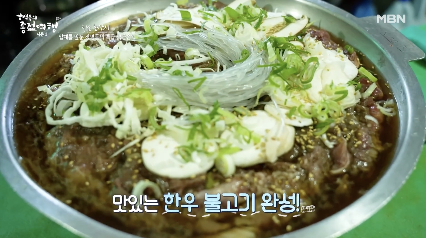 2023년 8월 12일 토요일 강석우의종점여행 시즌2 26회차 방송에서는 충남 논산시에 위치한 ‘한우불고기’ 식당을 방문하게 될 예정이다. 입대를 앞둔 장병들의 특급 식단이라 불리는 이곳에서는 직접 재운 한우불고기와 각종 집반찬들을 먹을 수 있어서 군장병들은 물론이고 논산을 찾는 여행객들과 로컬들의 사랑을 듬뿍 받고 있다. 이곳 식당의 위치는 아래쪽 바로가기 링크를 통해 확인할 수 있다. 또한 논산이라는 지역은 백제시대의 군사적 요충지였던 논산은 백제군사 박물관과 계백장군 유적지가 있어 계백장군의 자취와 당시 군사문화를 엿볼 수 있다. 탑정호는 산책로 뿐만 아니라 드라이브 코스로도 많은 사랑을 받고 있으며, 양촌자연휴양림은 아이들과 함께하는 주말 여행지로 좋다.