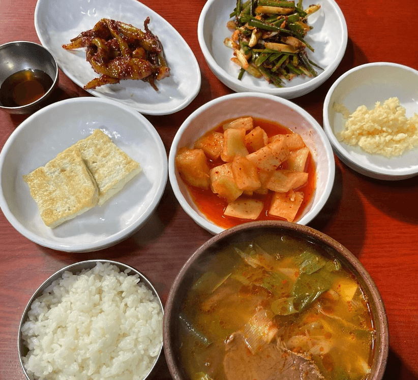 얼큰한 소고기무국 스타일의 대구식 육개장을 주문하면 뚝배기에 담긴 육개장 한그릇과 공기밥 두부부침과 간장, 빨간 부추무침과 양념 고추지 그리고 깍두기와 다진마늘이 나오는 구성이 정말 인상적이었습니다. 금일 전현무계획 방송을 통해 소개된 대구에 위치한 대구식 육개장을 판매중인 노포 식당의 자세한 위치는…