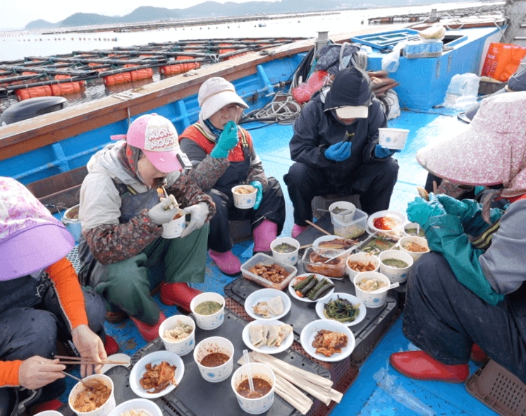 국내에서 유통되는 전복의 절반가량을 생산하는 ‘전복의 섬’ 노화도. 새벽 4시부터 최양식 씨(41세)네 양식장이 분주하다. 2톤가량의 전복을 수확해 출하하는 작업인데, 수조에서 건져 올린 통에서 흡착력이 강한 전복을 일일이 떼어내고, 크기별로 분류하는 과정에는 많은 일손이 필요하다. 그래서 이 섬에서는 품앗이로 이웃이 서로 돕는데, 이때 빠질 수 없는 게 새참이다.