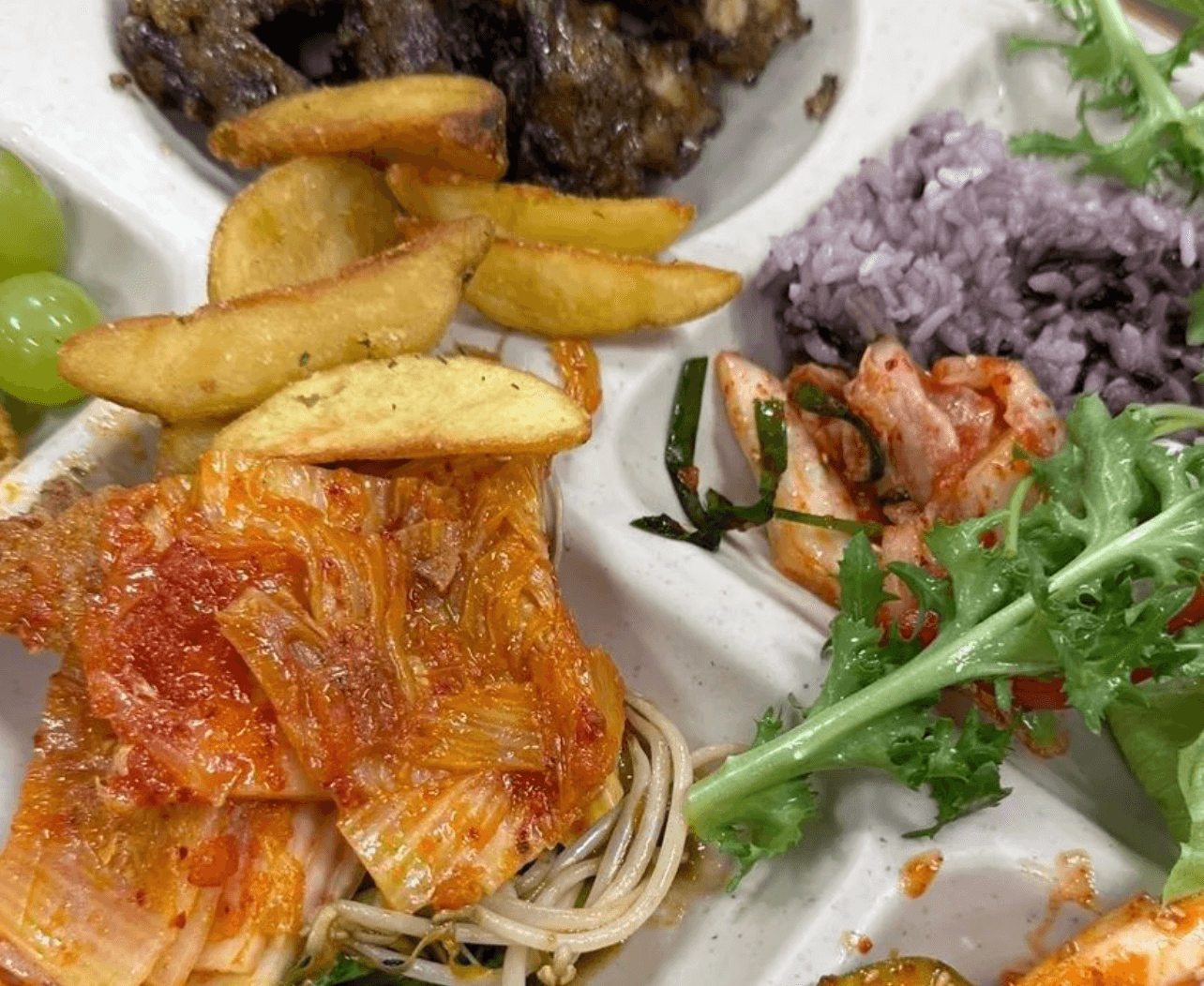 입구에 서면 한눈에 들어오는 깔끔하고 정돈된 인테리어가 눈길을 사로잡았습니다. 특히, 가게 내부에서 풍겨지는 음식의 고소한 향기가 식욕을 자극했습니다. 내부는 환하게 조명된 편안한 분위기였으며, 테이블과 의자도 정돈되어 있었습니다. 직원들은 친절하게 인사하며 자리로 안내해 주었고, 손님들에게 세심한 배려를 보였습니다. 홀 중앙에 다양한 음식들이 진열된 뷔페 라인은 생동감 넘치는 색감과 신선함으로 가득했습니다. 각각의 음식들은 깔끔하게 정돈되어 있었고, 셀프바 스타일로 손님들이 자유롭게 음식을 선택할 수 있도록 배려되어 있었습니다.