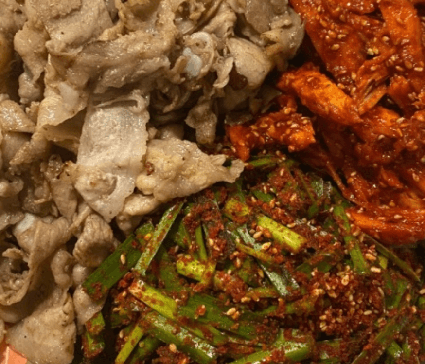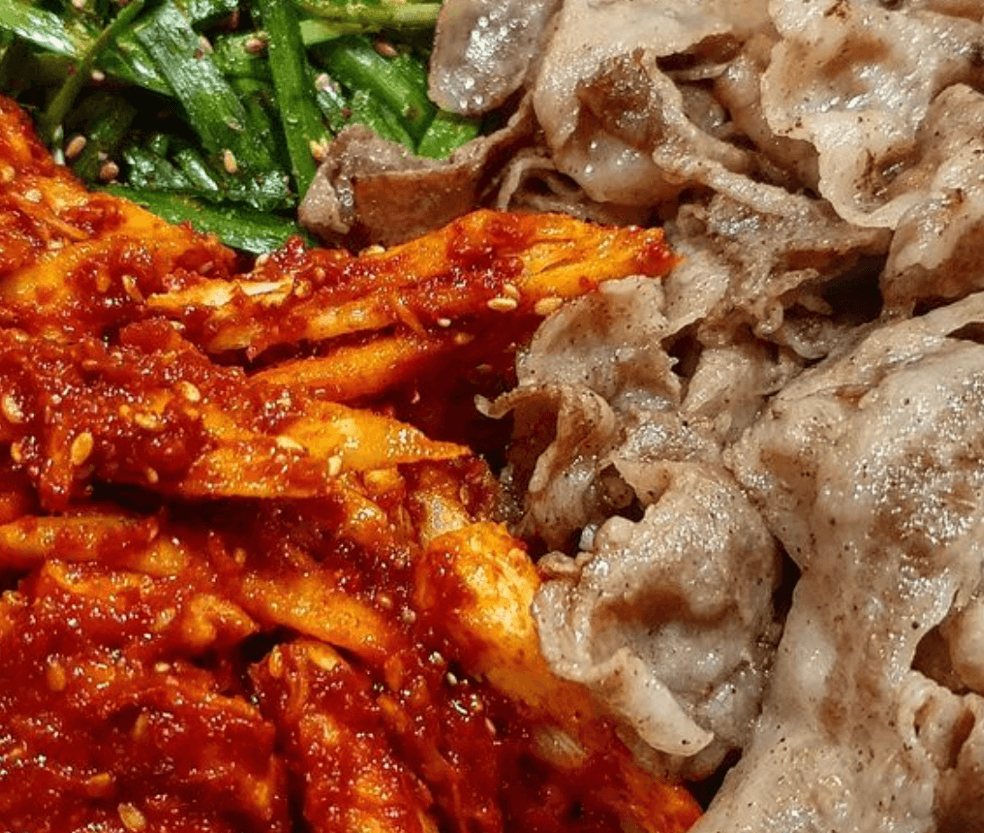 그중 가장 먹고 싶었던 윤기좔좔 흐르는 삼겹살과 빨간 맛 더덕과 아삭한 부추를 삼합으로 함께 즐기는 메뉴였는데요. 이곳은 아는사람만 안다는 그런 노포의 식당이라고 해요. 보기만해도 소주를 부르는 비주얼로 지인과 함께 술한잔 하러가기 좋을 듯한 곳이네요.