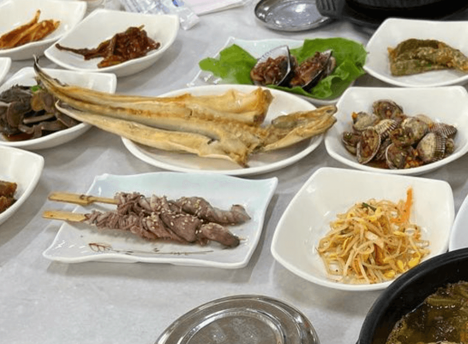 특히 제가 시도한 메뉴는 짱뚱어탕 중과 꼬막회무침이었는데, 둘 다 중독성 있는 맛을 자랑했어요. 짱뚱어탕은 정말로 진한 국물과 풍부한 짱뚱어 맛이 일품이에요. 반찬으로는 다양한 생선구이, 간장게장, 생선회 등이 나오는데, 식사의 즐거움을 두 배로 만들어 줬어요.