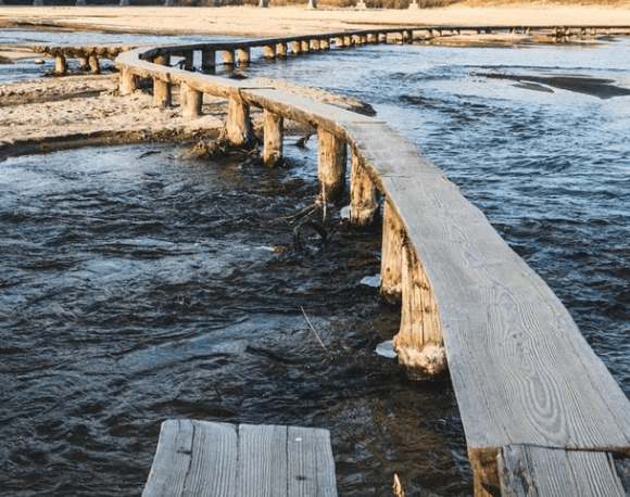 때문에 마을 사람들은 해마다 다리를 다시 놓았다고 합니다. 현재의 외나무 다리는 지난 350년간 마을과 뭍을 이어준 유일한 통로로 길이는 150m입니다.