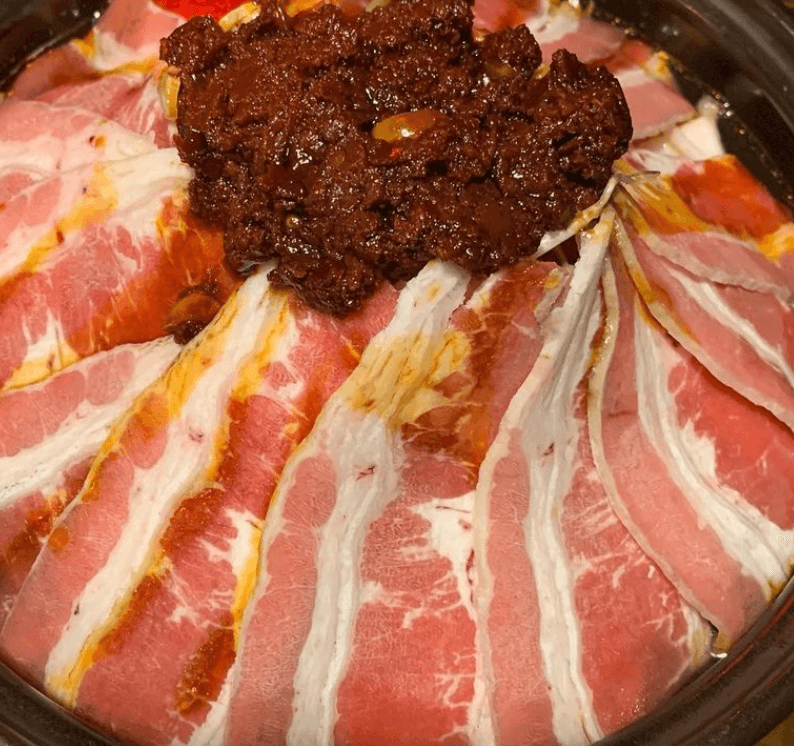 전골 육수에 마라소스와 우삼겹, 분모자, 중국당면등을 넣어 전골냄비에 끓여 먹는 마라 요리라고 합니다. 약간 매운 느낌의 마라탕은 스트레스 풀기에도 딱이죠.