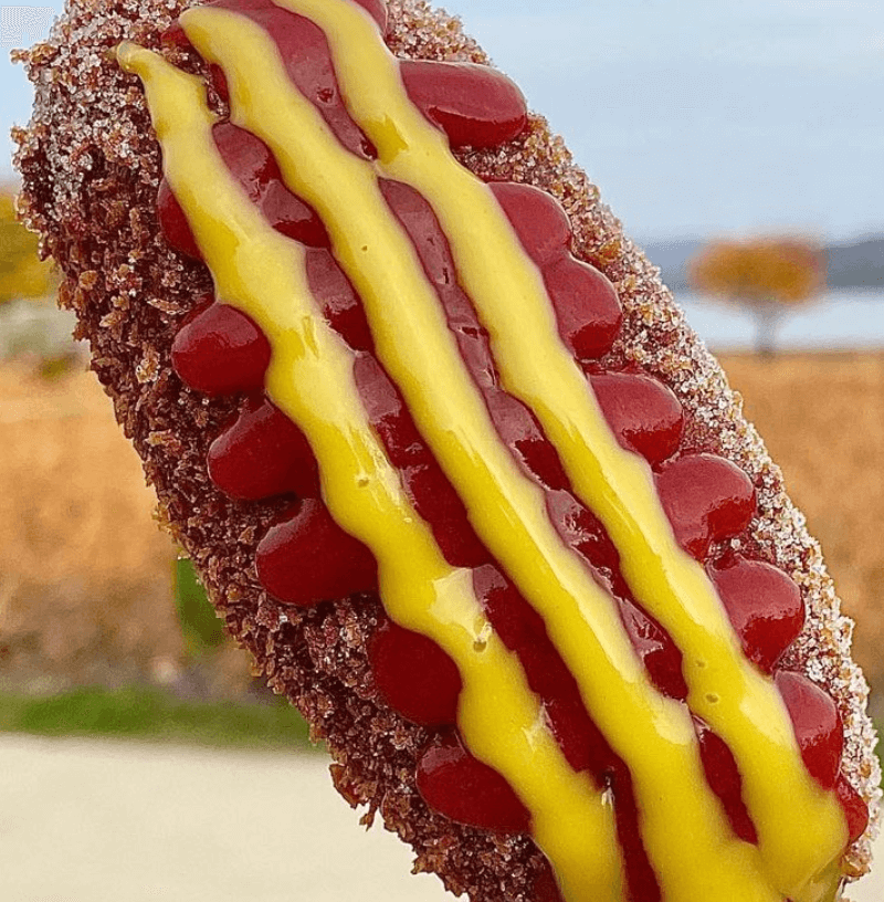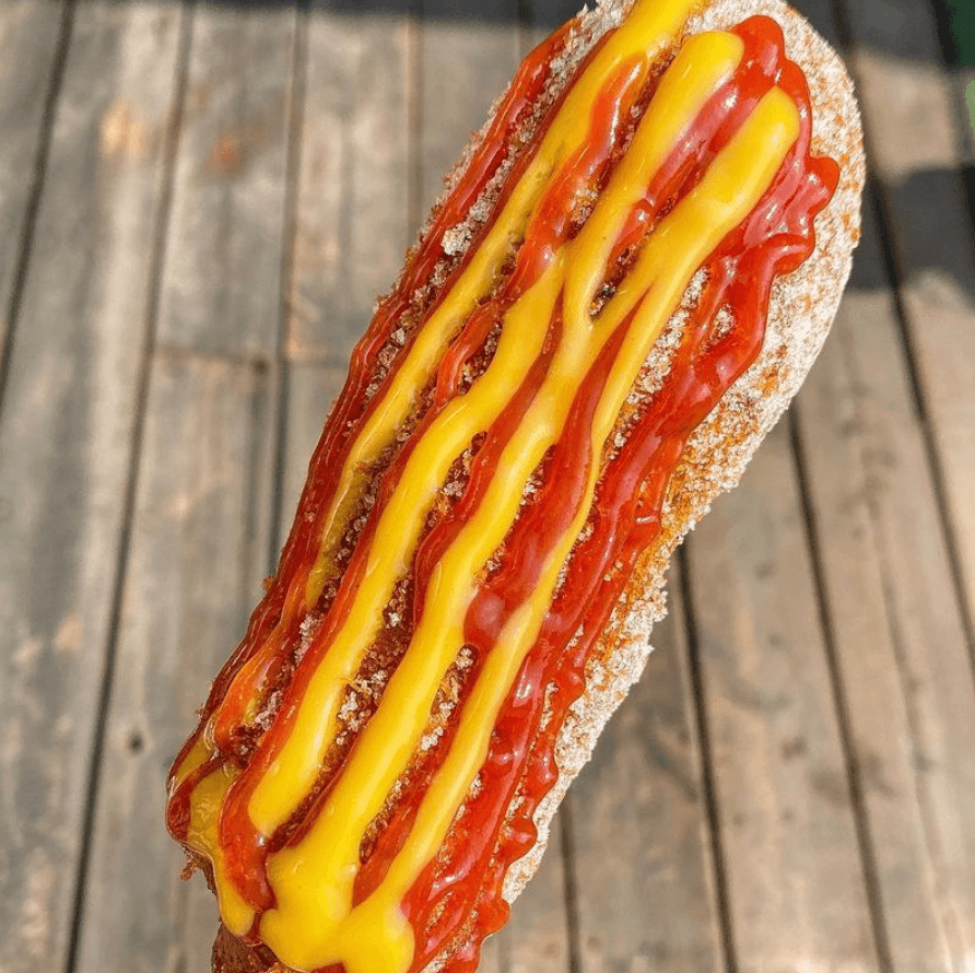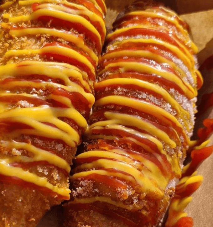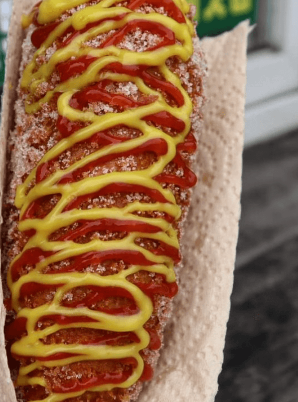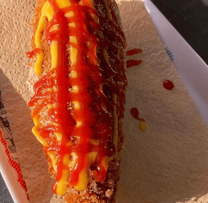 빵반죽은 두겹으로 되어있어서 폭신폭신 한입 가득 베어물면 입안에 가득 찰 정도로 푸짐 하다고 하네요. 저는 무조건 핫도그에는 설탕을 뿌리는 사람으로써 설탕 묻힌 핫도그 너무 좋습니다.