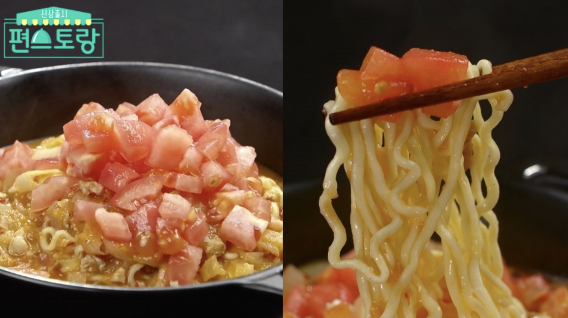 - 깊은 고민끝에 훌륭한 결과를 만들어낸 요리 이름하여 ‘토마콩면’이 완성되었고, 이는 토마토와 라조장, 땅콩잼을 활용해서 만든 중화요리 느낌이 가득한 라면이라고 한다.
