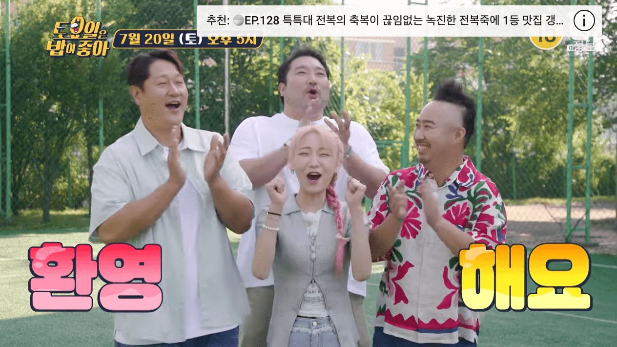 토요일은 밥이 좋아 프로그램은 E채널 로컬맛집을 찾아 떠나는 위대한 먹방 방송입니다. 히밥, 이대호, 현주엽, 박광재님이 매주 역대급 먹방을 선보이고 이쓴 토요일은 밥이 좋아 프로그램은 남녀노소 모두에게 은근 큰 파급효과를 가져오는 프로그램입니다. 특히 검증 된 찐 맛집들 위주로 소개되고 있어서 방송을 보시고 가족, 친구와 함께 꼭 한번쯤 방문을 해보셔도 좋을 것 같습니다.