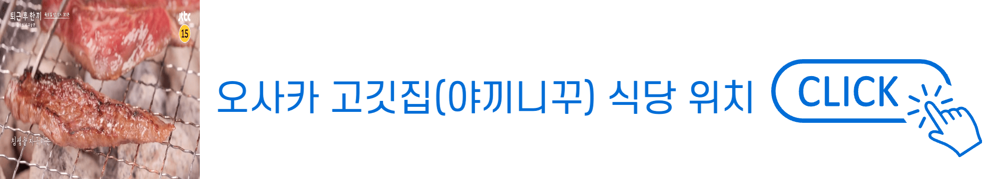 안녕하세요. JTBC 퇴근 후 한끼 1회차 방송을 통해 소개되었던 촬영장소를 작성한 포스팅을 찾아주셔서 감사드립니다. 마츠다부장과 정준하님이 방문했던 일본 오사카에 위치한 로바타야키 전문